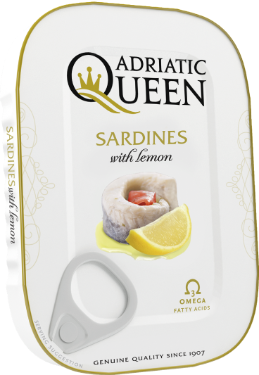 Adriatic Queen Sardines in Vegetable Oil with Lemon. Premium Adriatic sardines packed in light vegetable oil for a clean, authentic flavor.
